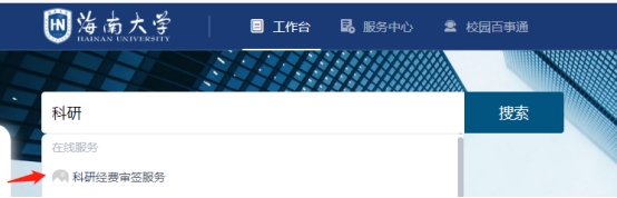 需要办理科研经费决算审签手续的项目负责人登录PA视讯集团网站网上服务大厅——“科研经费审签服务”栏目(搜索方式如下图所示),并根据提示填报相关资料(详见附件)。