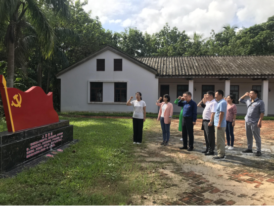 活动第二站,支部党员来到了儋州市歃血为盟纪念园,学习儋州市抗日战争历史。儋州市歃血为盟纪念园是为了纪念琼崖纵队与当地少数民族同胞歃血为盟,共同抗战的历史而建立。园内有一座《歃血结盟永跟党走》雕塑,再现了马白山等两位党代表和3位黎族代表,手捧着鸡血酒宣誓结盟的情景。此次现场参观学习,党员们共同缅怀为革命事业英勇献身和浴血奋战的先辈们,表示要更好地继承和发扬他们争取解放、不怕牺牲的斗争精神。